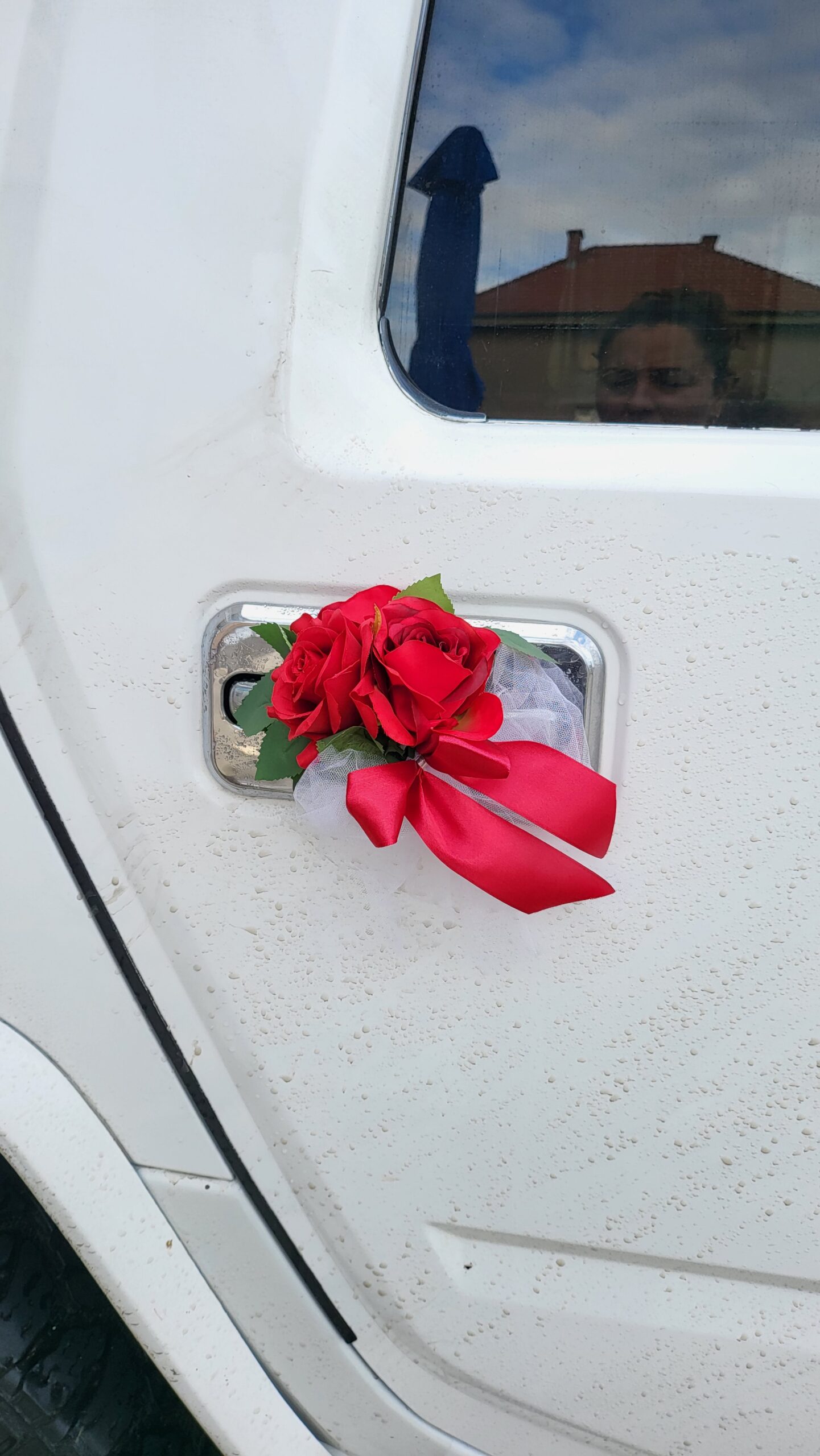 vakumsrce sa crvenim ružama , buketici na kvakama i masna pozadi