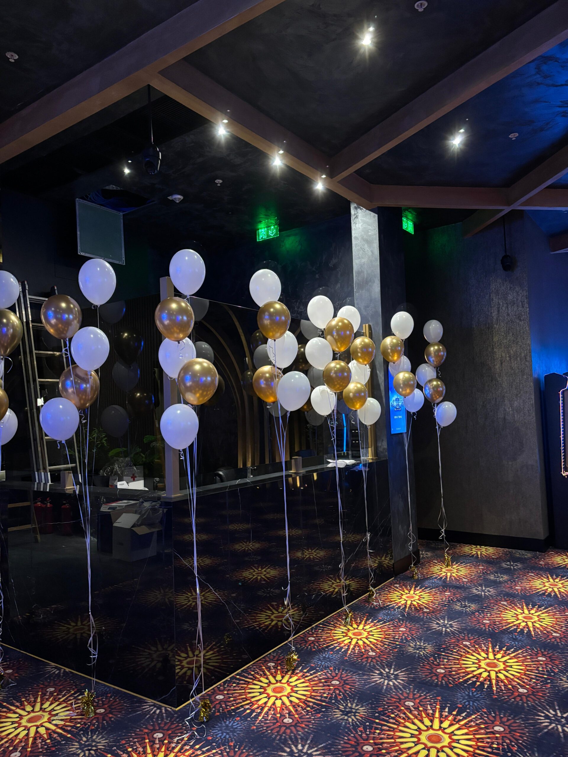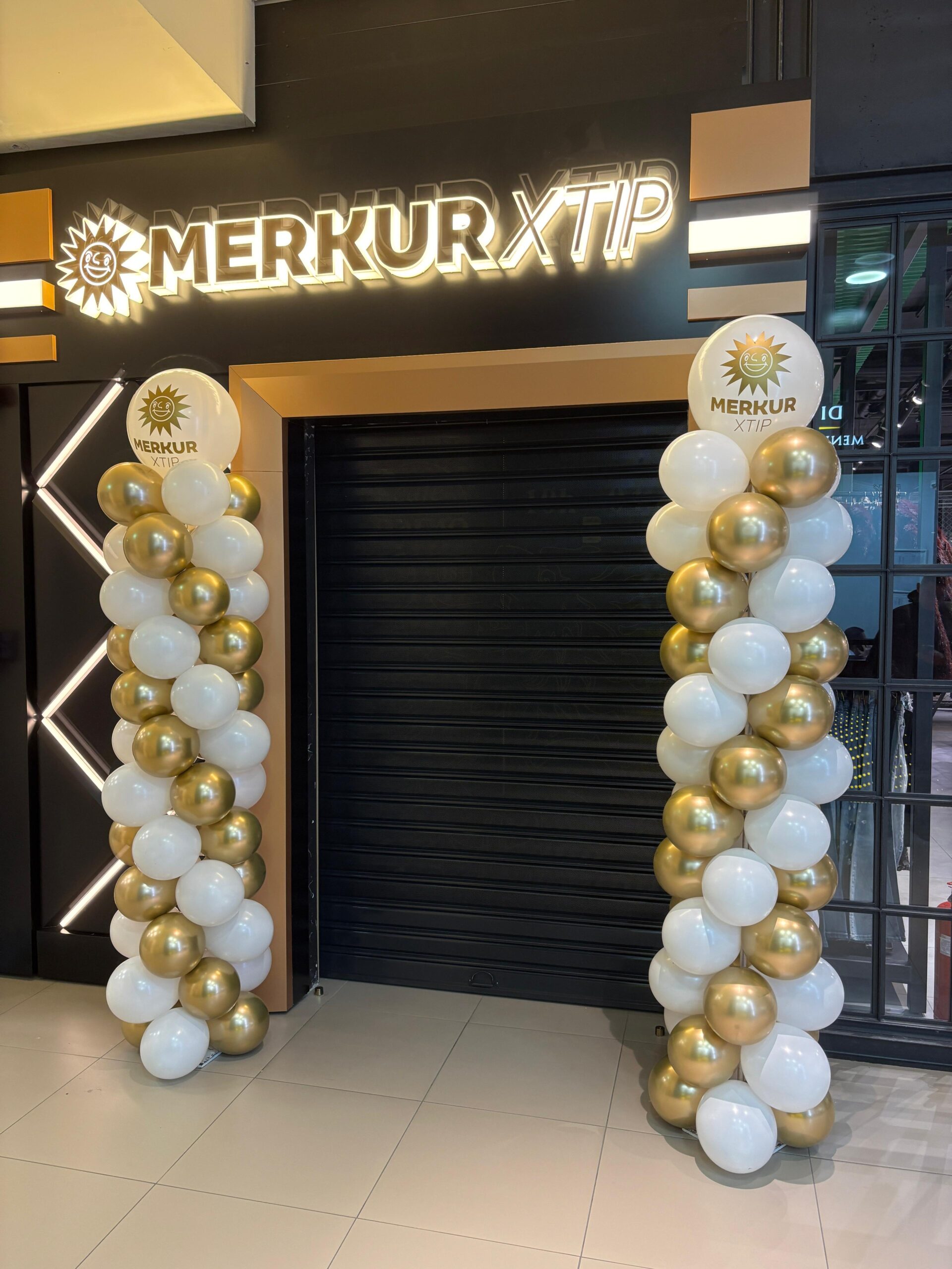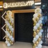 Brendirani stubovi od balona, kombinacija hrom i pastel balona.