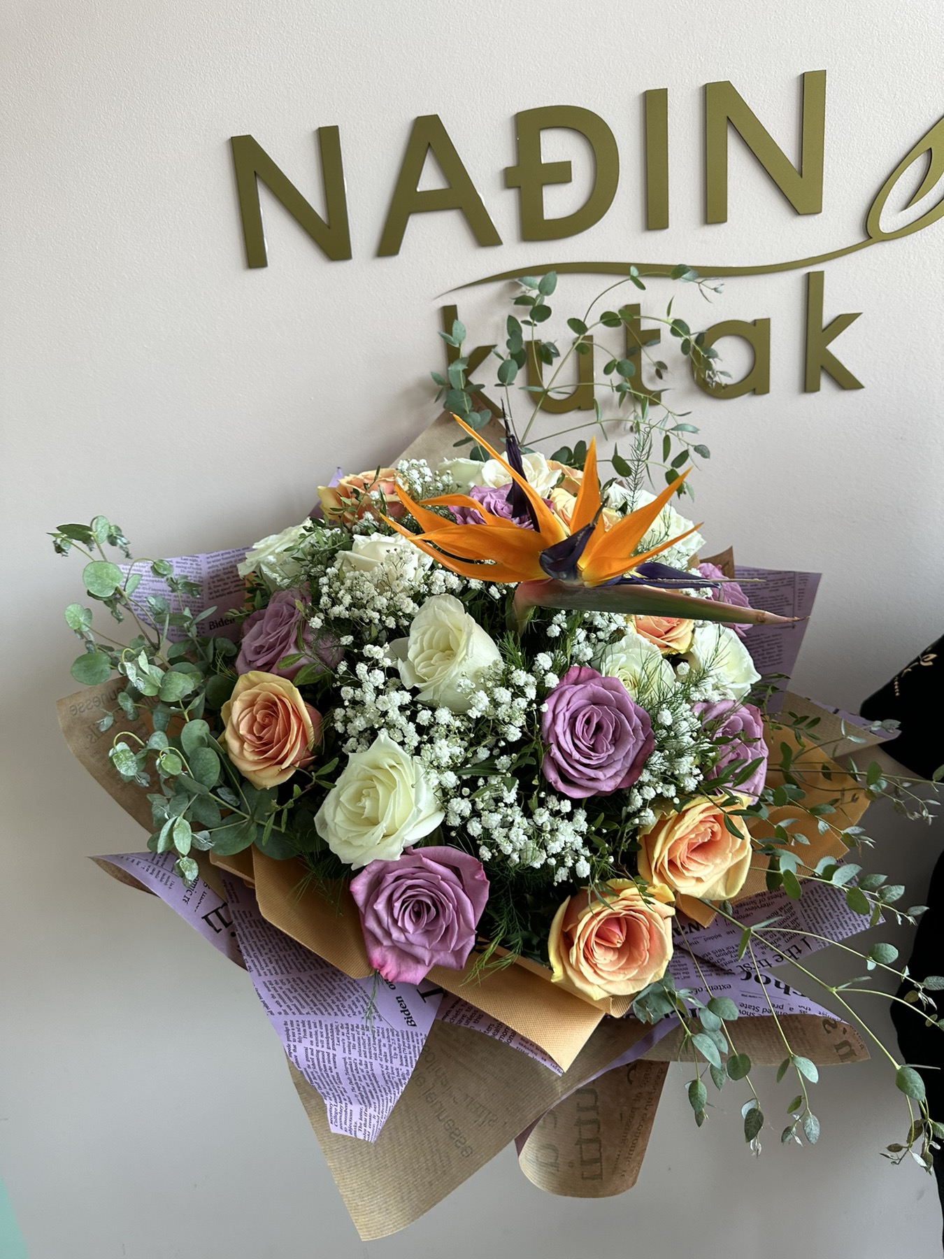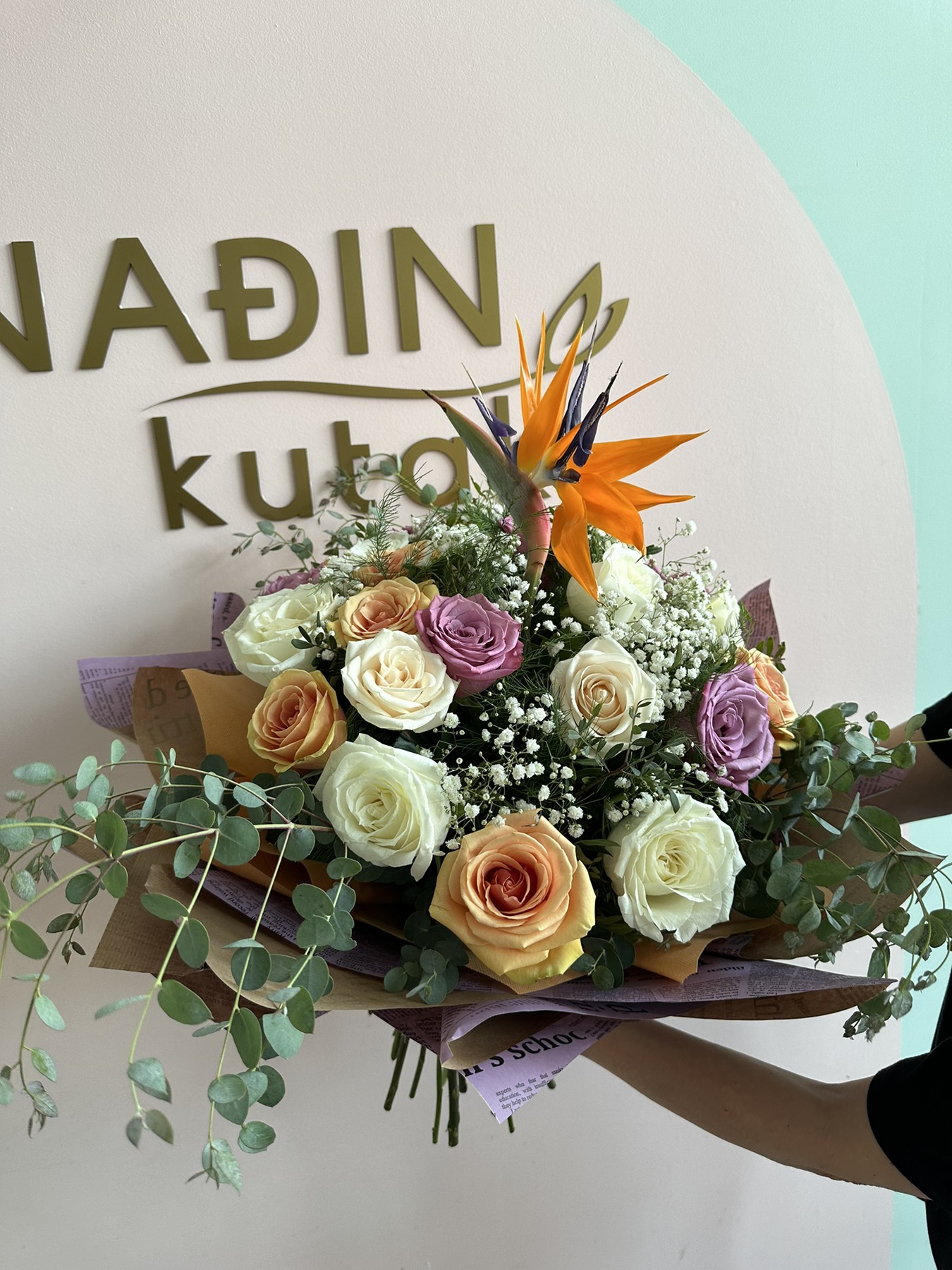 strelicija okružena ružama u kružnom pakovanju