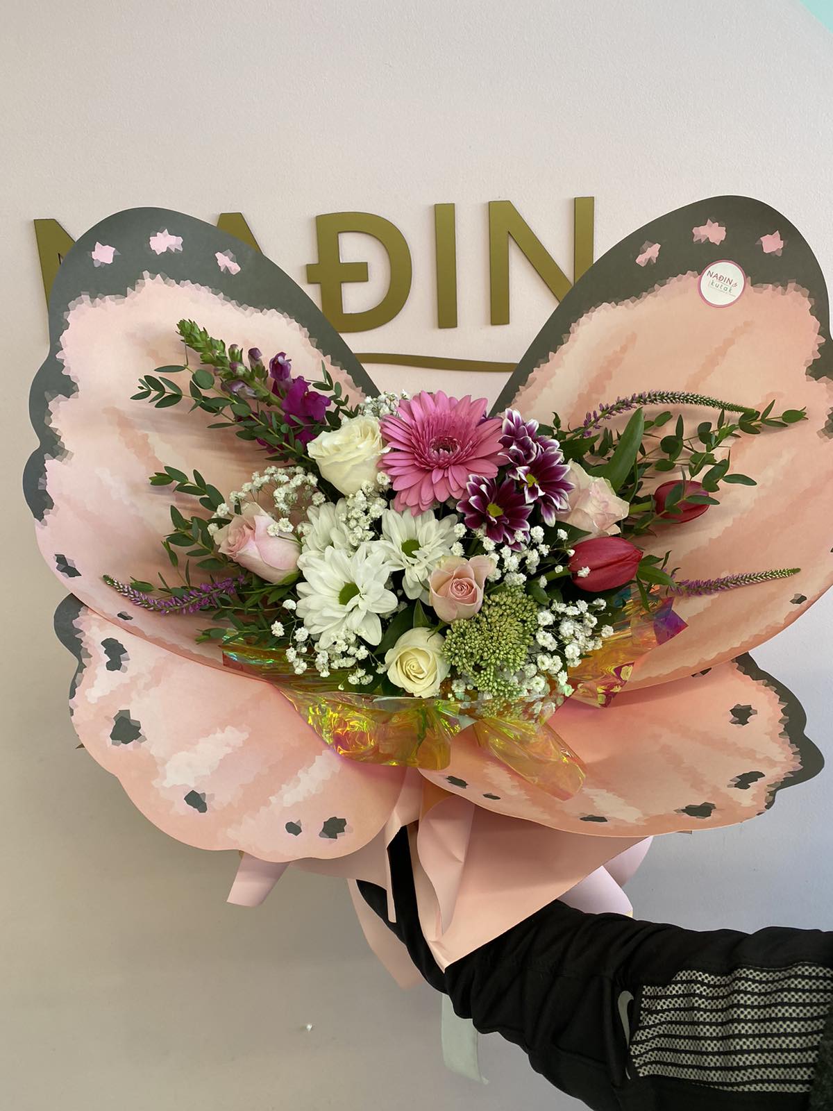 Buket cveća u pakovanju krila leptira