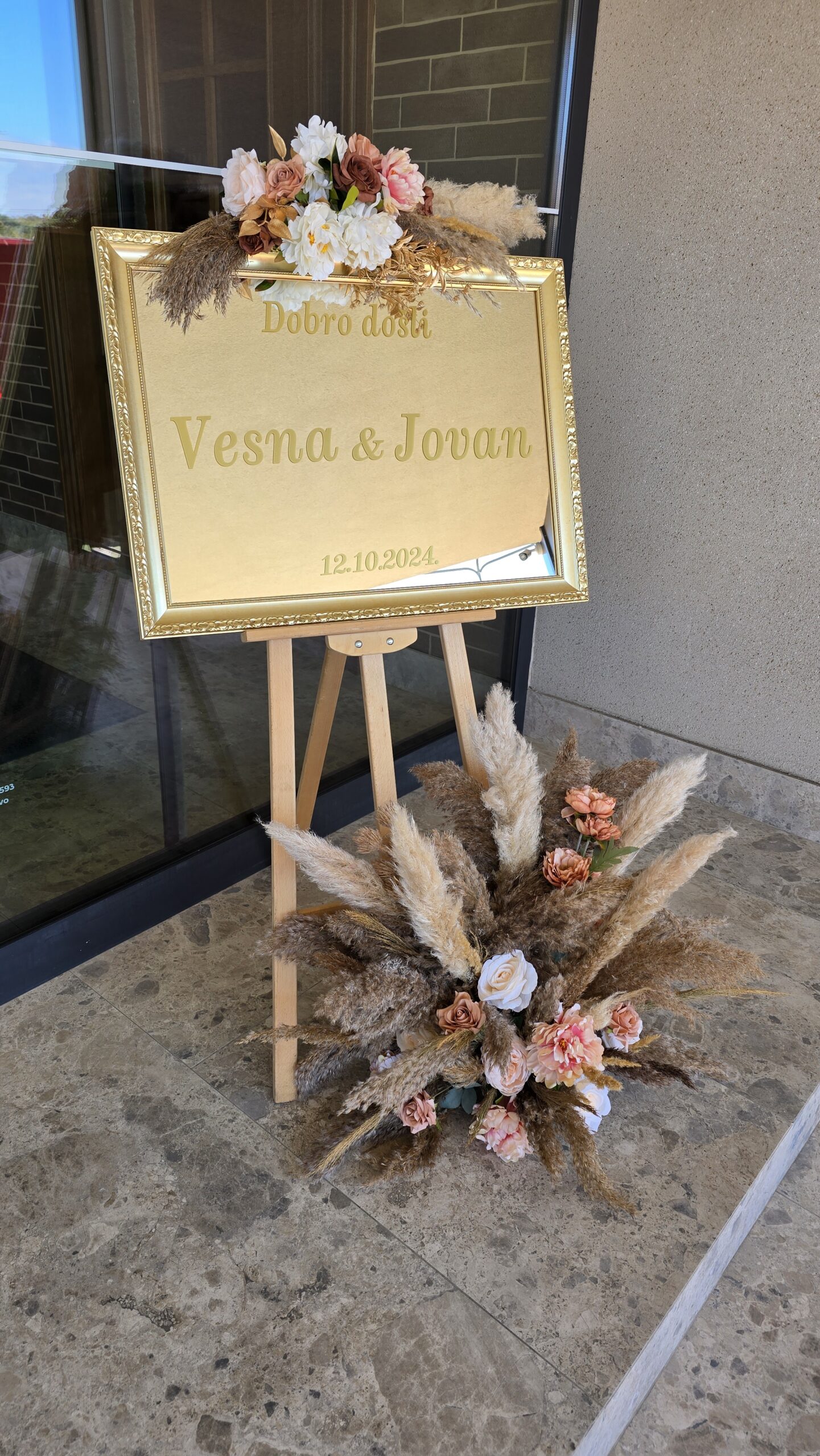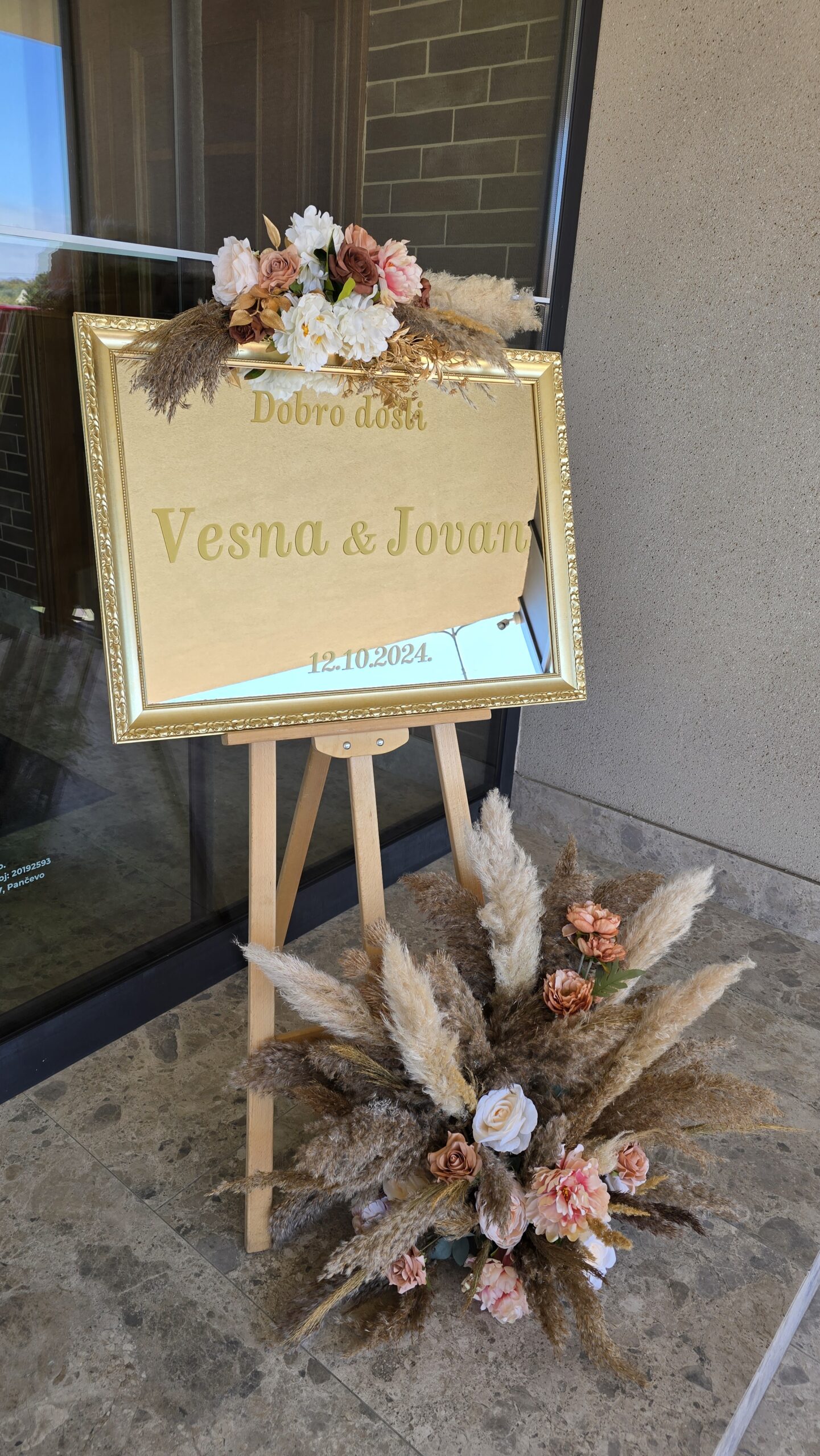 Tabla ogledalo sa aranžmanom od pampasa
